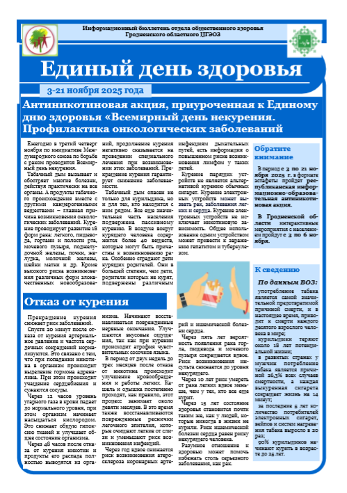 5 ноября в учреждении прошла яркая и запоминающаяся интеллектуальная игра “МЕДиУМ”, объединившая медицинских работников учреждения. Мероприятие стало частью антиникотиновой акции, направленной на повышение информированности о вреде табака и других зависимостей. Интеллектуальное состязание включало в себя несколько раундов, в которых участники отвечали на вопросы, связанные с медициной, биологией, другими сферами, а также — специально в рамках акции — с темой зависимостей.