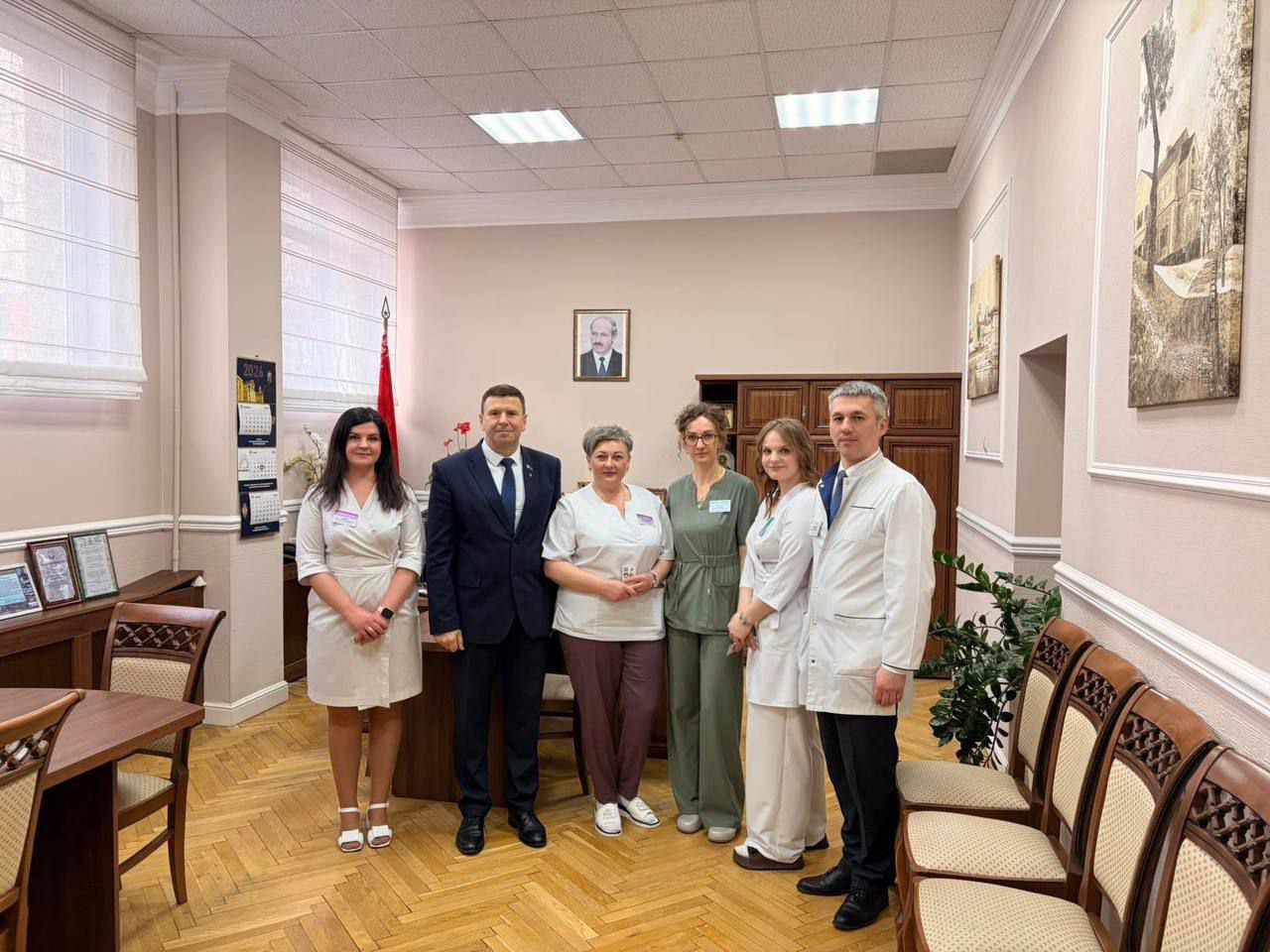 Главным спикером выступил председатель Гродненского городского Совета депутатов, председатель Октябрьского районного г.Гродно отделения Белорусской партии “Белая Русь” Олег БЕЛИНСКИЙ. Районный партийный лидер поздравил медиков с государственным праздником, отметив значимость основного Закона в жизни нашей Родины В торжественной обстановке вручил партийные билеты новым активистам. Источник информации