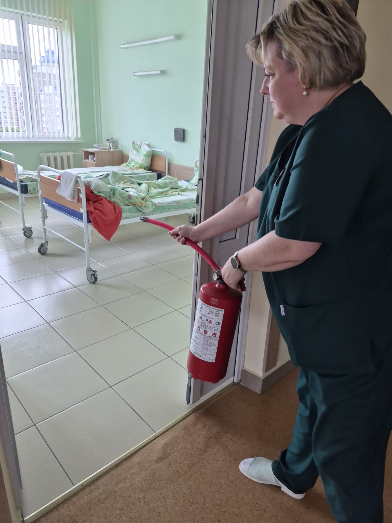 С целью обучения персонала, умению идентифицировать исходное событие, проверку готовности к эвакуации и проведению работ по тушению пожара и ликвидации последствий чрезвычайных ситуаций 28 апреля 2026 года в УЗ «ГКБСМП г.Гродно» с персоналом отделения микрохирургии была проведена тренировка по теме: «Действия при возникновении пожара, эвакуация людей и тушение пожара первичными средствами пожаротушения». Тренировка проходила во взаимодействии с противопожарным звеном учреждения, силами и средствами ПАСЧ-4 Октябрьского района г. Гродно.